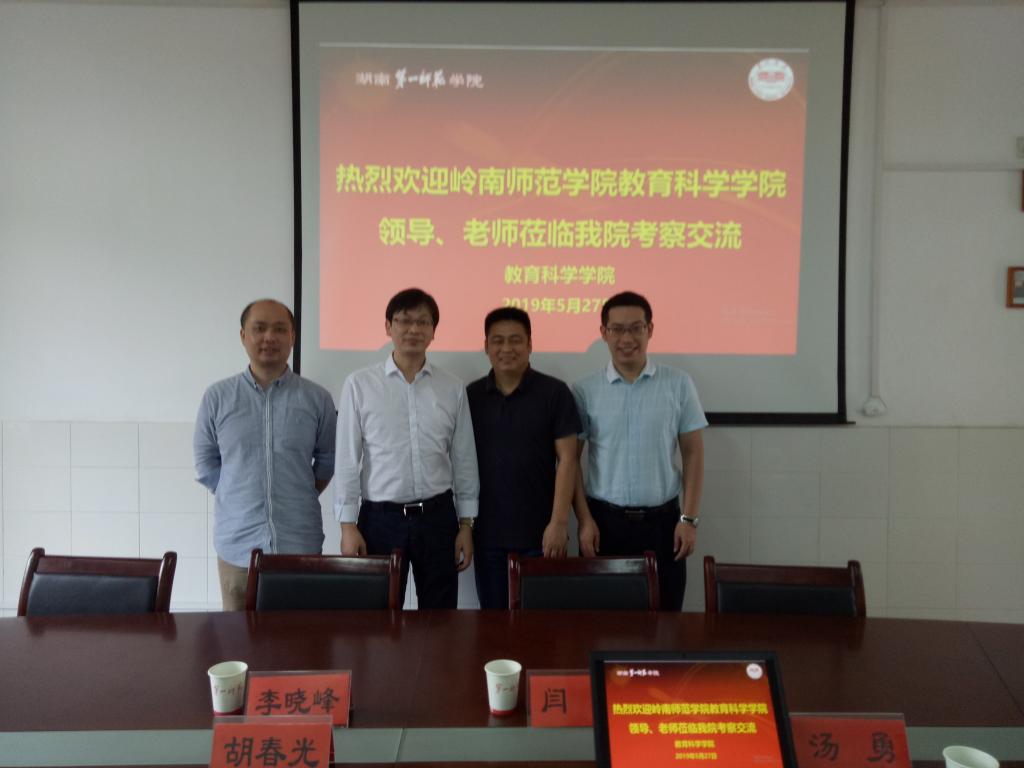 2019年5月27日上午,教科院副院长李晓峰博士、教学秘书闫闯博士一行前往湖南第一师范学院考察交流,与湖南第一师范学院教科院副院长胡春光教授、教科办主任汤勇老师进行座谈。