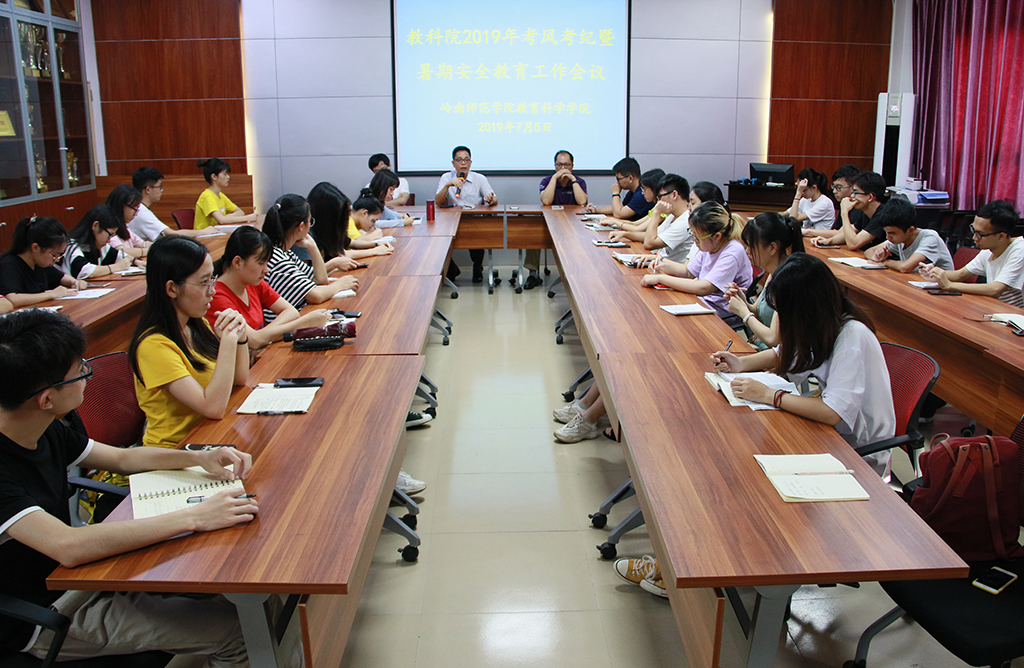 7月5日下午,教科院于教四408会议室举办2019年考风考纪暨暑期安全教育工作会议。教科院党委书记郭和才、党委副书记林志军、全体辅导员、各班班长和各机构主要负责人共同出席了本次会议。