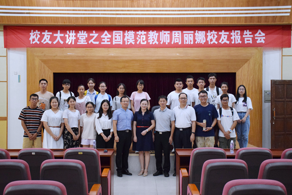 百年薪火相传,共济风雨路,教科院培养了一代代才华学子,他们在不同的领域、岗位上发光发亮,共同谱写着华丽的篇章。为促进学生更好发展,树立正确的世界观、人生观与价值观,9月28日,教科院于图书馆学术报告厅举办校友大讲堂之全国模范教师周丽娜校友报告会。校学生处副处长邓倩文、教科院党委书记梁晋、副书记林志军、辅导员李水清、 18级部分与19级全体小教专业学生共同出席本次报告会。此次报告会由曾荣获“全国模范教师”等两项国家级奖励、四项省级奖励、六项市级奖励、七项区级奖励的教科院2006级小语本科班毕业生周丽娜校友主讲。