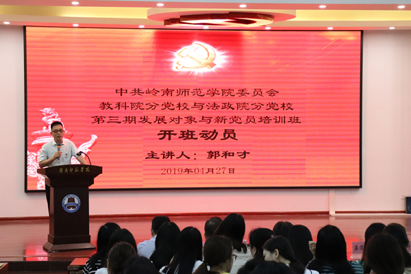 上午8点整,郭和才进行开班动员。他代表教科院分党校对参与培训的学员表示热烈的欢迎。在本年度我校安全工作、申硕、新校区建设三大重点工作并驾齐驱的重要时刻,郭和才希望新党员及发展对象应当以全新的面貌和姿态去迎接这个光荣的使命。他提出三点要求与学员们共勉:一、提高认识;二、学以致用;三、内化知识。他强调本次培训班,分党校将会以优异的师资、丰富的内容、多样的形式提高培训学员的思想认知水平,使他们在日后的生活和学习中严格要求自己,充分发挥党员的先锋模范作用。
