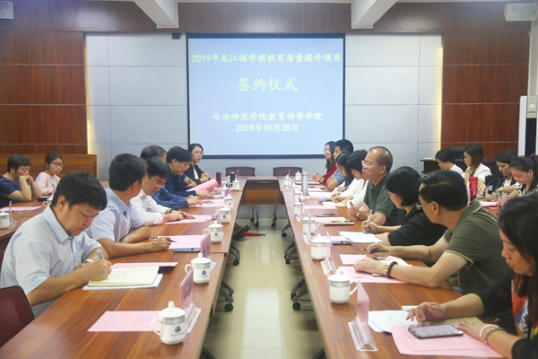 10月28日,岭南师范学院教育科学学院于408会议室举办2019年顺德区龙江镇学前教育质量提升项目签约仪式。岭南师范学院戴黍副校长、顺德区龙江镇教育局李瑞文书记、教科院范兆雄院长、顺德区龙江镇相关幼儿园园长及教科院学前教育系老师共同出席上述活动,签约仪式由教科院党委梁晋书记主持。