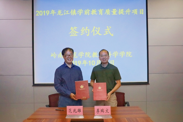 在参会人员的共同见证下,范兆雄院长、李瑞文书记分别代表双方正式签署了2019年顺德区龙江镇学前教育质量提升项目协议。