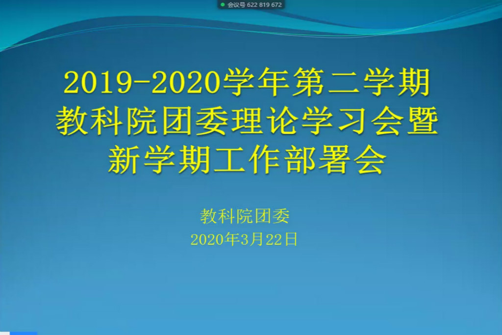 为贯彻落实岭师共青团理论学习中心组会议精神,认真做好新学期工作部署,3月22日晚,教科院团委在线上开展了理论学习会暨新学期工作部署会。教科院团委负责人关刘君、全体团委干部参加了会议。