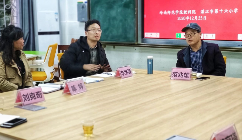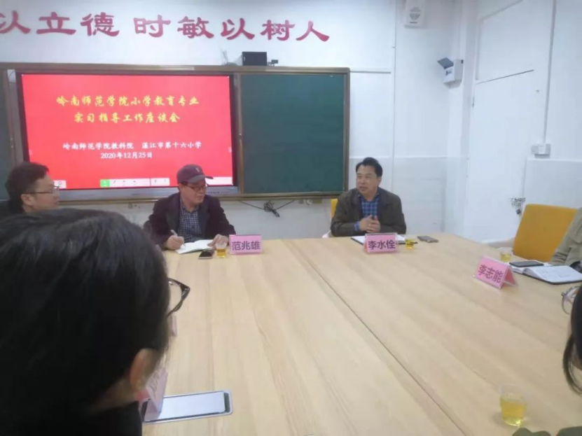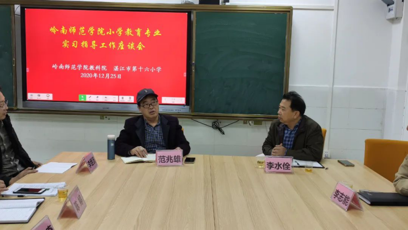 随着时间的流逝,实习期也渐渐接近尾声了。2020年12月25日,岭南师范学院教育科学学院范兆雄院长,李继波副院长和慕彦瑾主任来到湛江市第十六小学了解实习情况。出席本次座谈会的还有十六小的李水佺校长、李志能副校长、陈婷副校长、带队老师刘克奇教授,和三位学生代表。