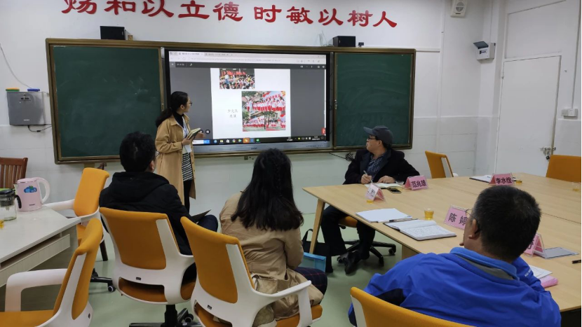 实习小组组长陈秋燕同学汇报实习情况,展示实习简报和美篇。