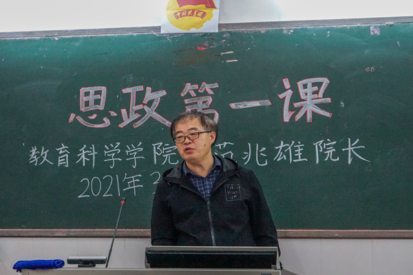 3月23日上午,教科院院长范兆雄于教四401以“学校党史教育的价值功能及其实现途径”为主题,为学院学生开讲新学期“思政第一课”。