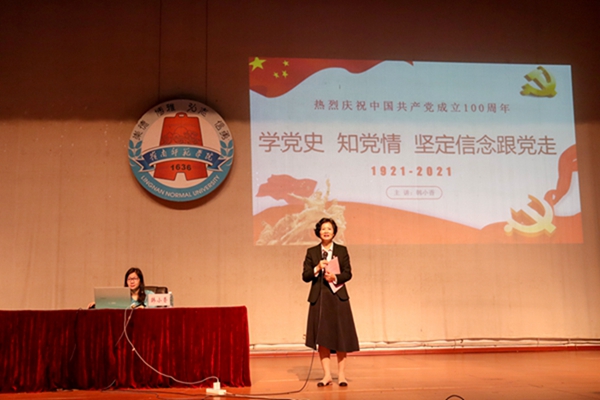 4月11日上午,教科院分党校于音乐厅开展党史学习教育。马克思主义学院韩小香副教授以《学党史、知党情、坚定信念跟党走》为题向440多名入党积极分子,党员发展对象及新党员宣讲。