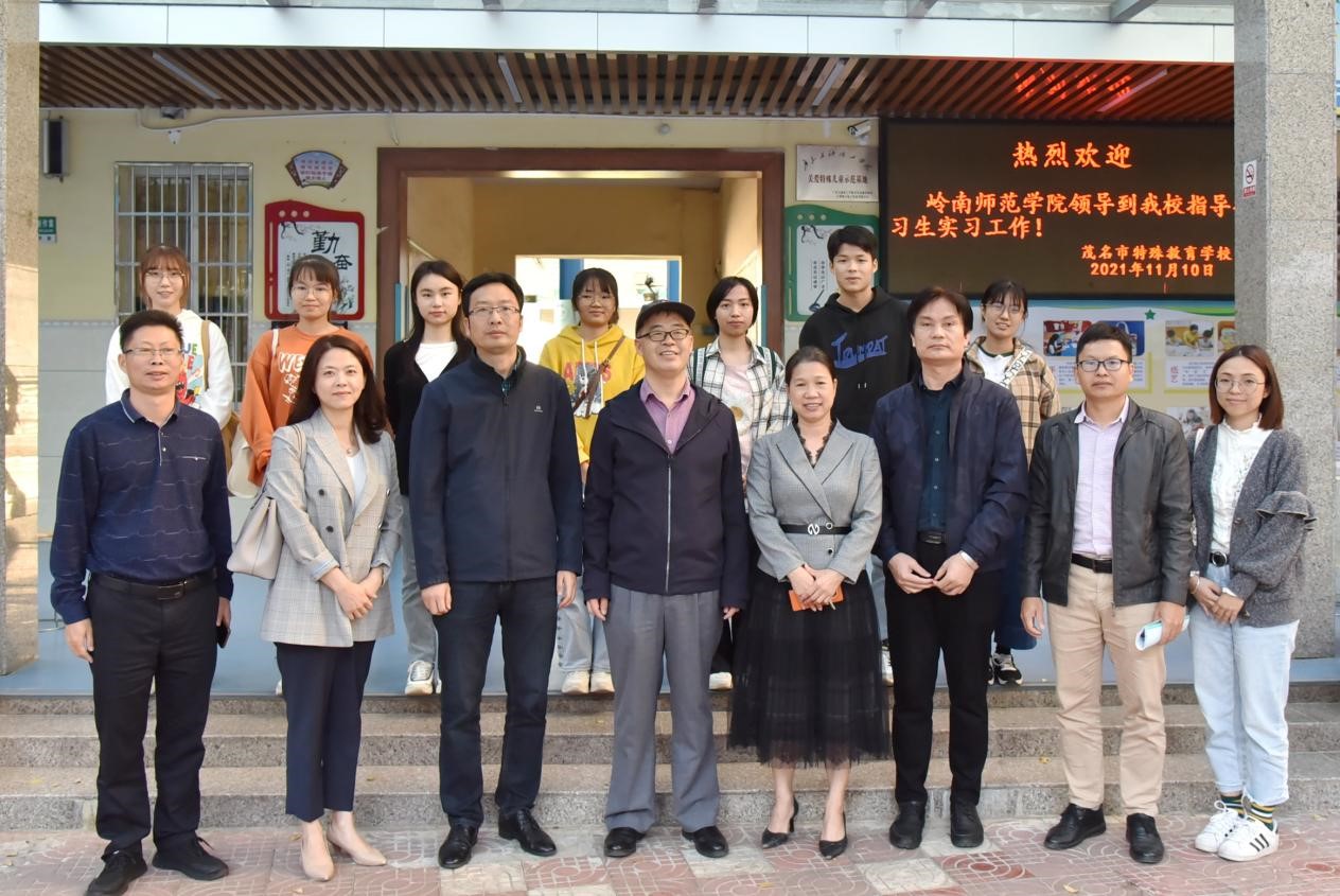 2021年11月10日,岭南师范学院教科院范兆雄院长一行到茂名市特殊教育学校考察实习教师的工作和生活状况,并与茂名市特殊教育学校领导、茂南区特殊教育学校教师代表及实习教师参观学校文化建设,共同开展工作座谈会。