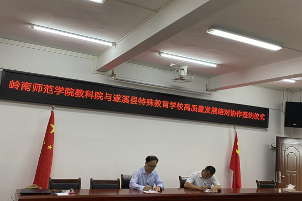 5月6日,岭南师范学院教育科学学院赴遂溪县特殊教育学校举行高质量发展结对协作签约仪式。教科院党委书记梁晋、院长范兆雄、副院长陈金圣、遂溪县特殊教育学校校长张景良、特殊教育系石梦良老师及遂溪县特殊教育学校教职工共同出席仪式。