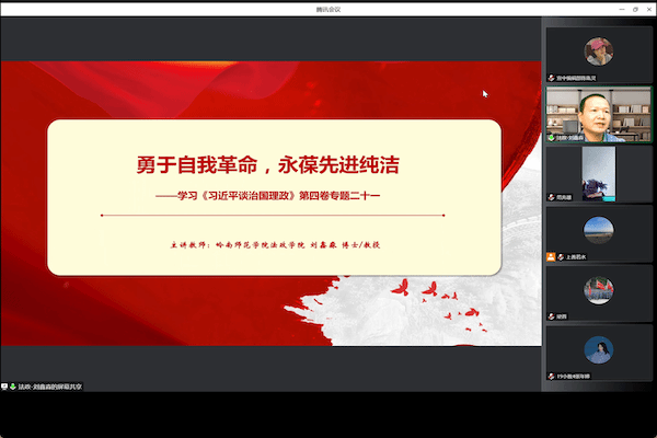 为深入学习贯彻习近平新时代中国特色社会主义思想,认真学习《习近平谈治国理政》第四卷,10月12日下午,教育科学学院召开《习近平谈治国理政》第四卷专题线上宣讲会。教科院全体教职工和部分学生党员参加了会议。宣讲会由岭南师范学院法政学院刘鑫淼院长主讲。