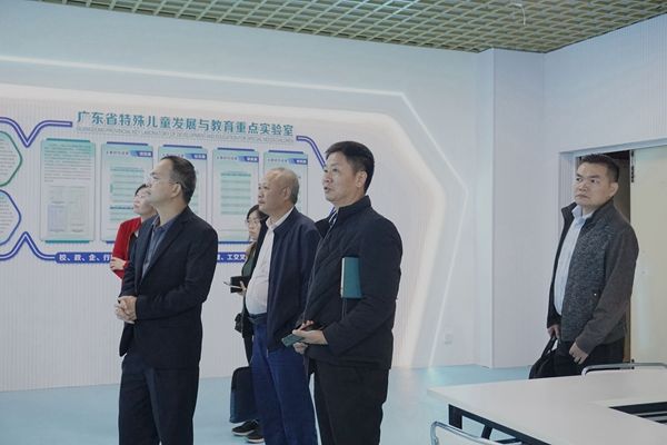 座谈会后,教科院党委书记梁晋带领残疾人联合会副理事长钟维炎、赤坎区残疾人联合会书记刘进梁、副理事长陈琼英参观了知动训练室、眼动训练室、自闭症儿童康复训练室、特殊儿童光干预实验室、特教实验室、运动康复实验室。党委副书记陈理才、副院长陈金圣、实践中心主任张长征、特教系主任杨洁陪同。