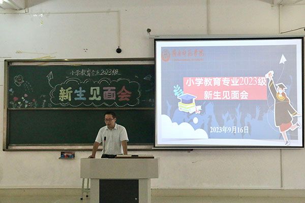 会议伊始,范兆雄院长为同学们简单介绍了我校的悠久历史及我院各专业的历史渊源,具体分析了小学教育专业的学科优势,指出要聚焦学科前沿并敢于创新,同时鼓励同学们积极进取、认真学习专业技能、向优秀的师兄师姐学习,努力成长为具备专业技能的教师后备军。