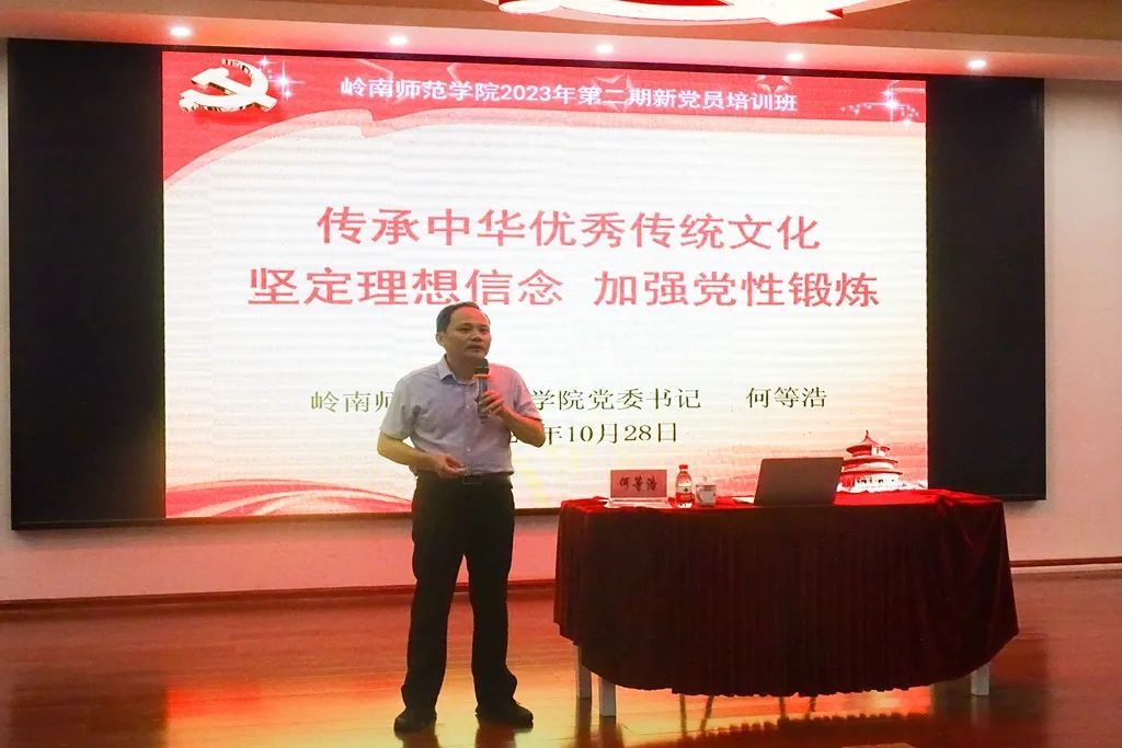 岭南师范学院2023年第二期新党员培训班于10月28日在第三教学楼211教室举行。本次培训班由中共岭南师范学院委员会党校主办、教育科学学院分党校承办。学校纪委副书记、纪检监察室主任付继发、商学院党委书记何等浩和马克思主义学院副院长夏松涛担任本次培训主讲嘉宾,全校298名新党员参加了培训。