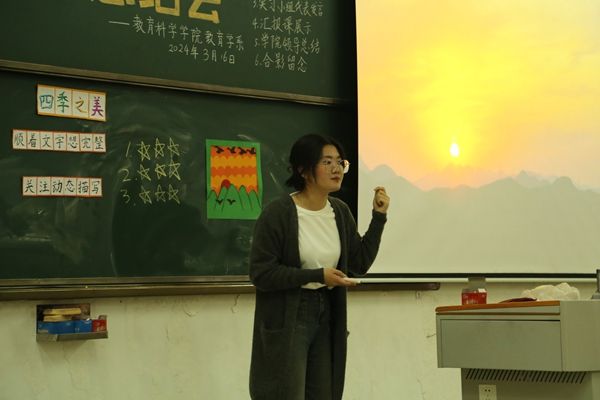 紧接着会议进入第四项流程——汇报课展示。五组学生分别进行了课堂展示。他们巧妙地将理论知识转化为实践操作,充分展示了实习中学习锻炼的成果。