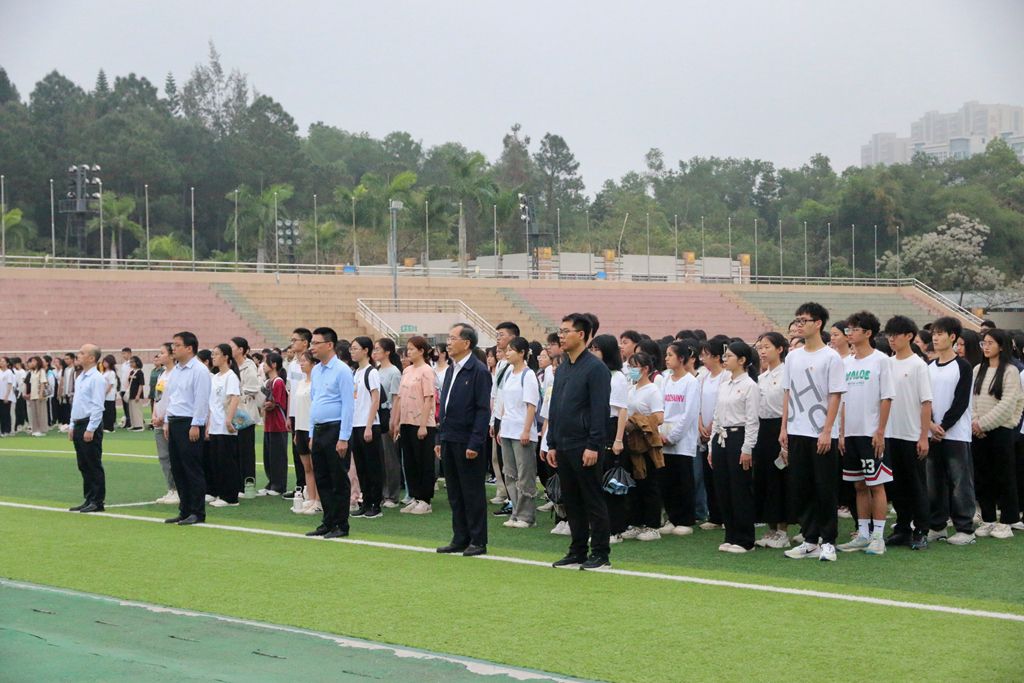 3月25日上午,教育科学学院于雷阳区田径场举办第五周升国旗仪式。教科院党委副书记陈理才、副院长李继波、陈金圣、正处级组织员郑赞芳、办公室主任黄献、辅导员杞昭安、李水清、朱丽儒、黄谭腾、康安琪以及教科院22、23级全体同学参加本次升旗仪式。