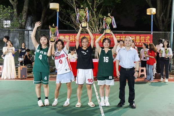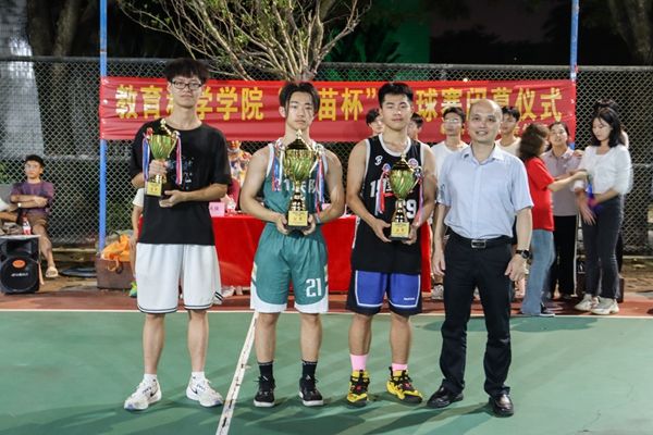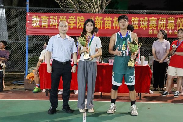 赛后,陈理才和康安琪为比赛获奖者颁奖。康安琪表示今夜注定是一个难忘的、值得铭记的夜晚。教科院的体育文化节和教师教育文化节都已举办超过20年,是无数教科学子的集体记忆,我们要将教科院的优良传统一届一届传承下去,并不断为之增添创新元素。今年决赛周创设全明星赛、技巧大赛、投篮大赛,这些新元素的加入为“新苗杯”注入了新活力。陈理才则表示“无篮球,不青春”,希望大家能够记住赛场上的这份情谊,继续努力奋斗,感受青春,激扬青春。在热烈的氛围中,本次闭幕式落下帷幕。