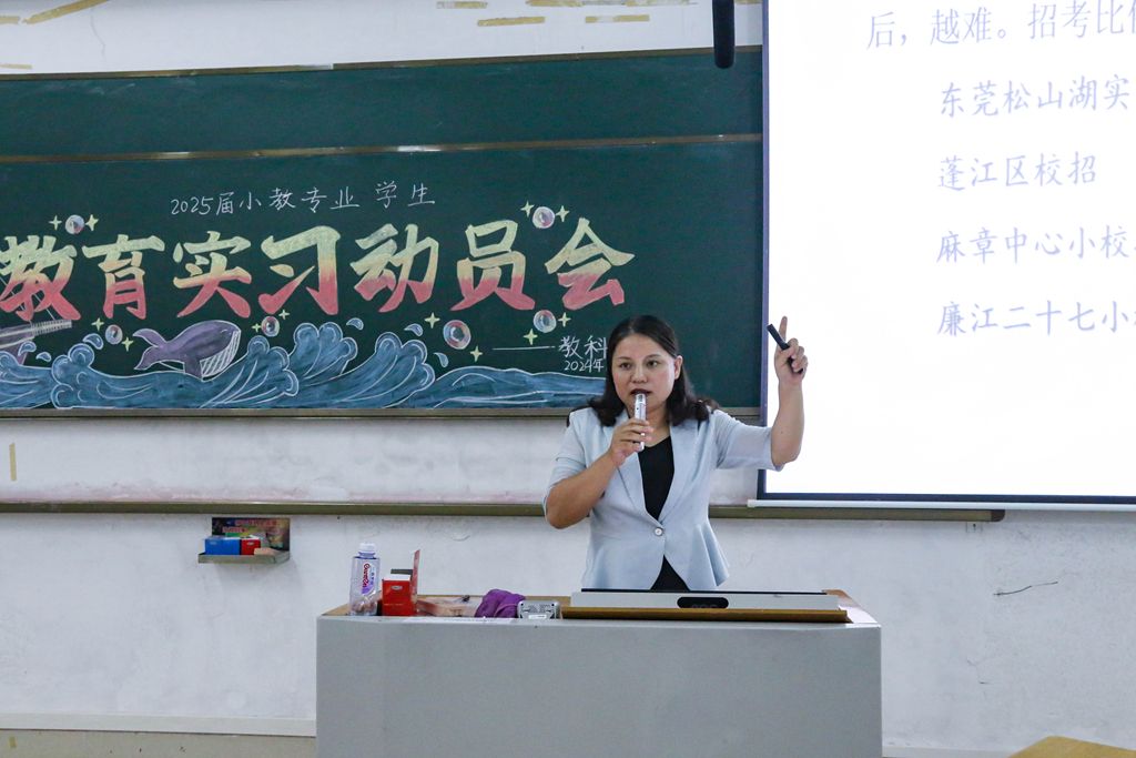 为了激发2025届小学教育专业学生的实习热情,引导他们深入了解教育行业的动态,探索职业发展前景,并为他们未来的教育生涯奠定坚实的基础,教育科学学院于2024年6月16日在第三教学楼611召开了2025届小教专业学生教育实习动员会。教科院副院长李继波,广东省名教师工作室主持人梁桂云,以及教育系实习指导教师出席本次会议,教育系主任闫闯老师担任会议主持人。