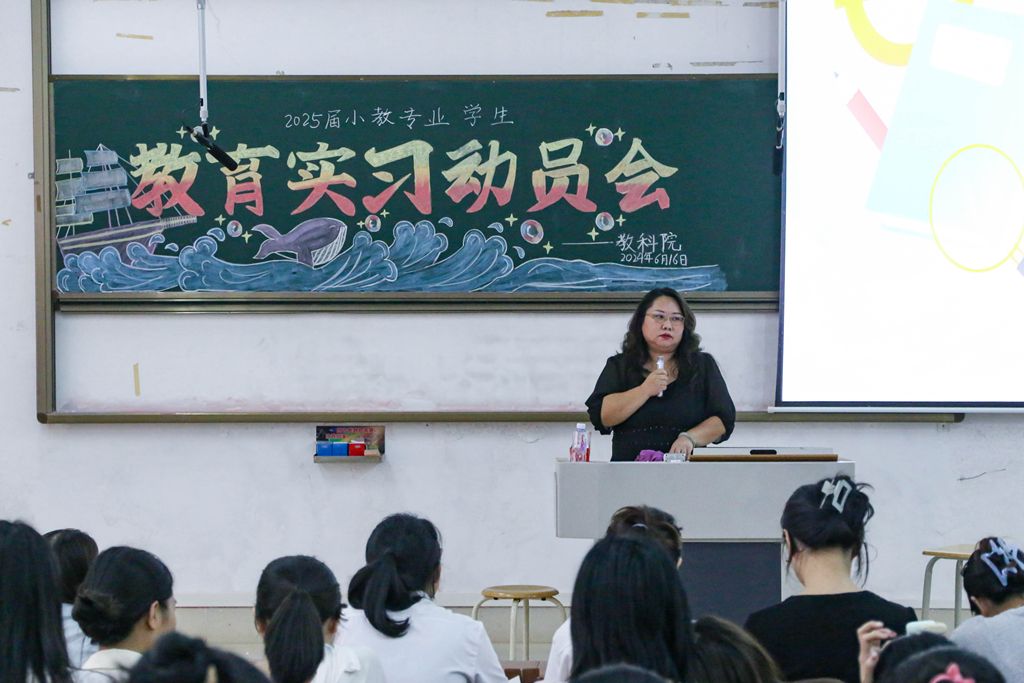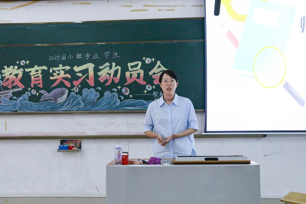 最后,系主任闫闯对动员会进行了总结,并对即将踏上实习征程的学生们表达了殷切的期望和祝福。他们希望学生们能够在实习中充分发挥自己的专业优势,勇于探索和创新,为未来的教育事业贡献自己的力量。
