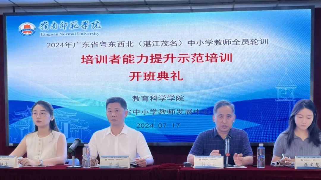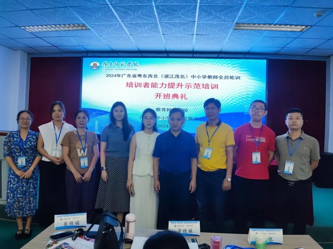 7月17日上午,由岭南师范学院教育科学学院承办的2024年粤东西北(湛茂两地)中小学教师全员轮训项目之培训者能力提升示范培训在岭南师范学院如期开班,来自湛江各市县区和茂名电白区的与教师研训相关的50名领导和教师参加了培训。