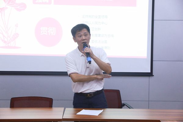 10月11日晚,教育科学学院党委书记梁晋在教四C栋408室,以“深入学习党的二十届三中全会精神”为主题,为院学生会全体学生工作人员开讲思政第一课。