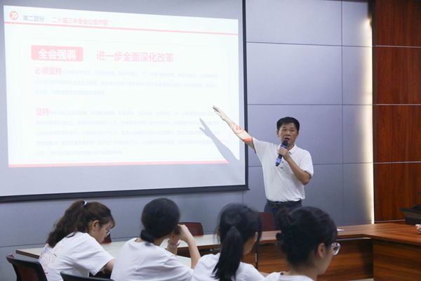 最后,梁晋对全体同学提出了殷切希望:要深刻领会全会精神实质,不断增强政治意识;要明确全会提出的目标任务,积极投身到改革实践中去;更要坚定信心决心,勇于担当作为,以实际行动展现学生干部的先锋模范作用,展现出新时代青年的担当风采。