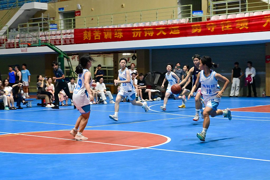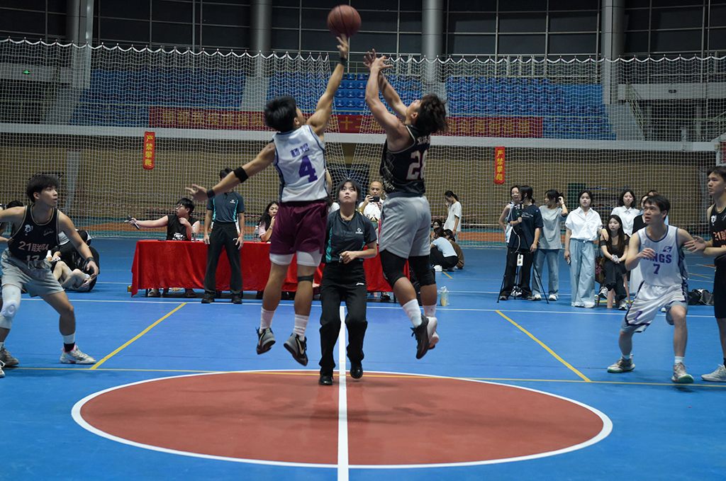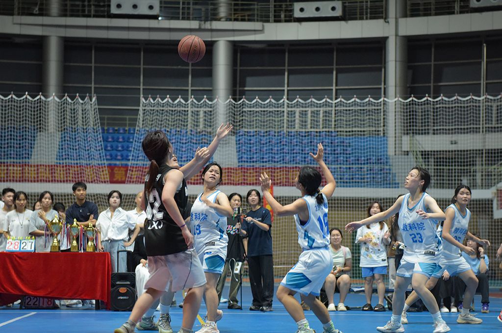 随着裁判的一声哨响,女篮决赛在21联队和22小教队之间火热开战。比赛伊始,双方在激烈的攻防对抗中迅速进入状态。22小教队率先突破防线,一记精准投篮打破僵局,为队伍注入强劲动力。面对暂时落后的局面,21联队沉着应战,稳扎稳打地寻找战机。中场休息时,教科院声乐队激情演唱的《着魔》瞬间点燃全场,将赛场氛围推向高潮。经过短暂休息后,下半场21联队迅速调整战术,68号球员戴小晶一记漂亮的两分球划破长空,将比分强势扳平。22小教队在队长龙飘婷的带领下展开凌厉反击,凭借精妙的战术配合和默契的团队协作频频得分。双方你追我赶,比分交替上升,每一次精彩的攻防都引得发观众席阵阵欢呼。最后时刻,赛场气氛达到白热化,在震耳欲聋的呐喊声中,21联队以26:25的比分战胜对手,捧得桂冠。