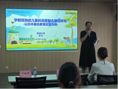 2025年9月19日上午,岭南师范学院于教四E-709举办了雷阳大讲坛,特邀裴虹专家带来“学前孤独症儿童的深度融合路径研究:以日本融合教育实践为例”主题讲座。