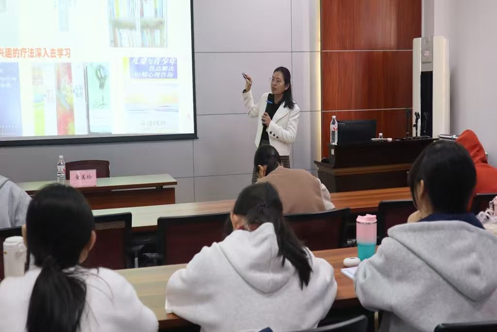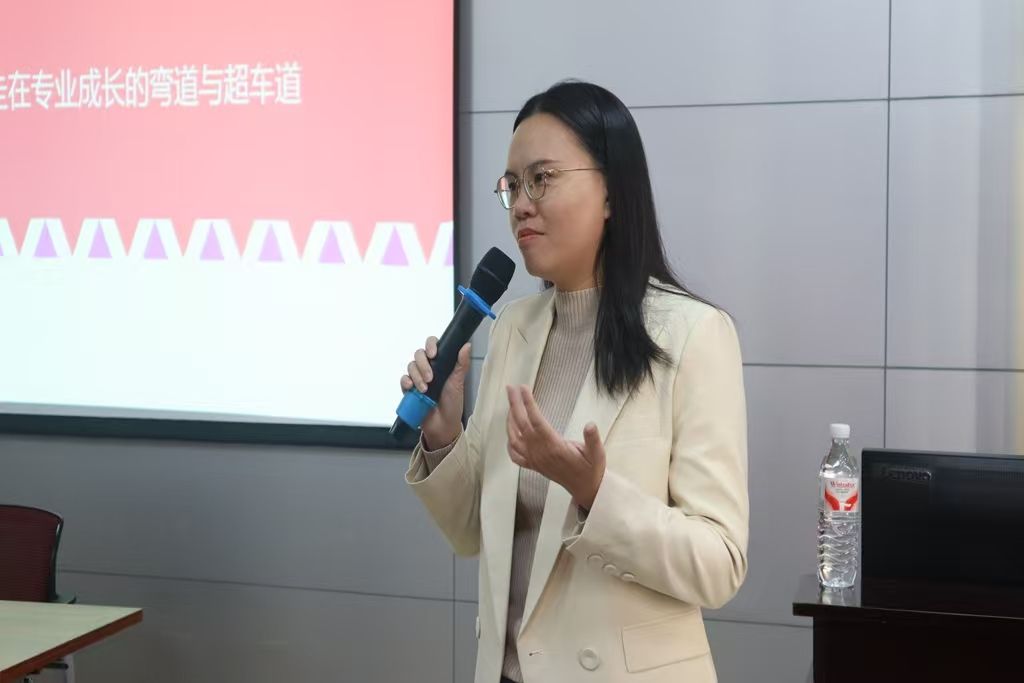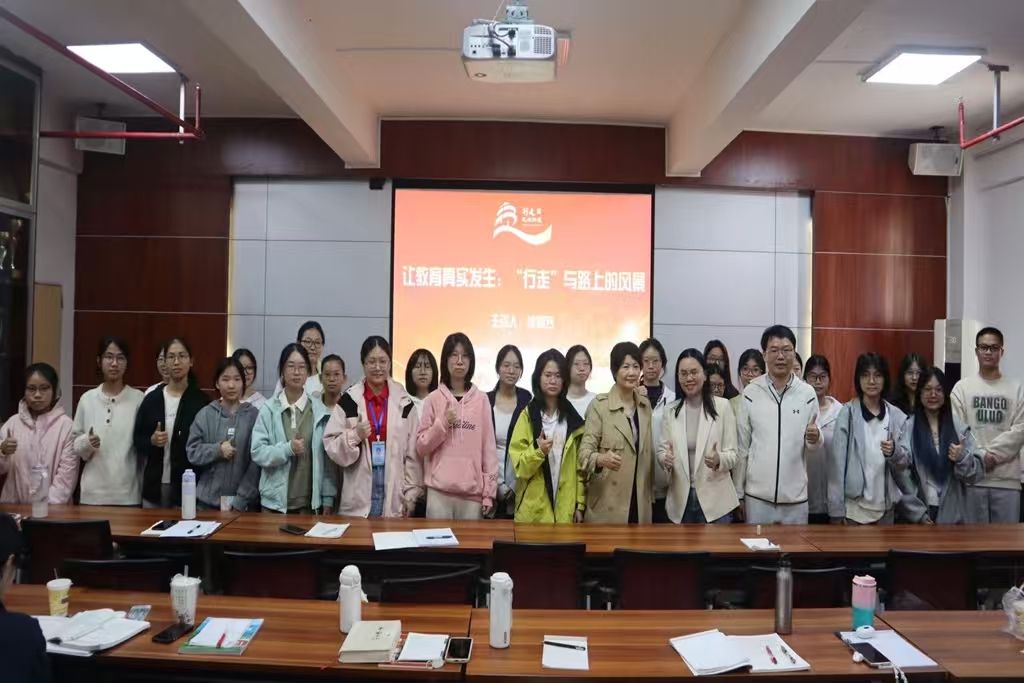 黄美玲担任第 64 期“行走的思政课堂”报告会的主讲人。她以“深耕心育一线,领航成长之路”为主题展开分享。作为长期深耕于心理教育领域的专家,她从心育工作的职业特性入手,系统阐述了“深耕”的内涵及其实现路径。她结合自身经历,详细讲述了从课堂教学到个案辅导、从校本课程开发到区域教研的成长历程,强调“每一次认真备课、每一次耐心倾听、每一次专业反思,都是在为职业发展奠定坚实基础”。她娓娓道来、循循善诱,台下的同学们时而凝神思索,时而提笔记录,不时点头回应,现场氛围沉稳而温暖,互动井然有序。