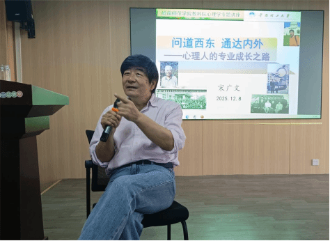 12月8日下午,一场以《问道西东 通达内外——心理人的专业成长之路》为主题的学术讲座在我院成功举办。本次活动旨在深入探讨心理学专业人才的成长路径,吸引了众多师生到场聆听。我国知名心理学家、华南理工大学博士生导师宋广文教授应邀担任主讲嘉宾。报告由教科院李继波教授主持。