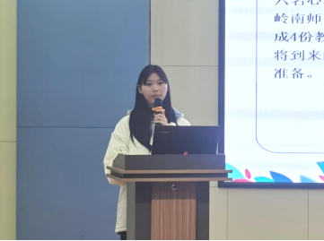 会上,特殊教育专业李淑娟、小学教育专业黄韵希、心理学专业陈妙娟、学前教育专业黎彦乔等4名实习生代表依次登台进行实习汇报,以图文并茂的形式生动分享了实习期间的宝贵经历与显著蜕变,全面展示了各实习小组在教学实践、班级管理等方面取得的丰硕成果,深入总结了实习中的收获与感悟,向低年级同学提供了极具价值的经验借鉴与成长启示。