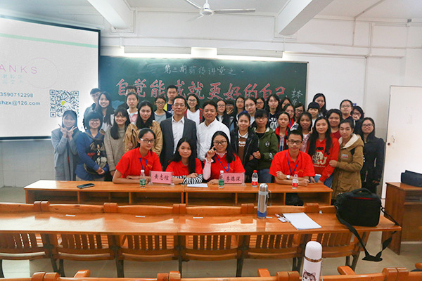 围绕这一主题思想,黄志煊向同学们介绍提高自身职业生命自觉的五个方法。一是调整健康心态。演讲过程中,黄志煊提出教师要有“三心二意”,三心为谦逊之心、同理心和情爱心;二意为诚意和主意。二是拥有职业情怀。黄志煊把教师视作学校流动的精神文化和学生阅读的书籍。三是实现自我增值。黄志煊指出人要脚踏实地去为自己而努力。他还建议同学们多读书,多思考,善于培养自己的美好品质。四是承担责任使命。黄志煊引用了德鲁克的名言“使命决定愿景”简单讲述了责任意识的重要性。五是坚定教育信仰。黄志煊向同学们分享了他从业多年得到的启示:为人师要敬畏、谦卑和低调。