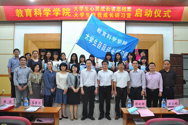 5月7日,教科院在湛师图书馆学术报告厅举行学生心灵成长省思档案和自我成长研习营启动仪式,创新打造了大学生自我成长促进平台。校党委彭权群副书记,校团委郭和才书记,校党委组织部柯春明副部长,校学生处陈永国副处长,湛江市第一幼儿园张丽园长,湛江市机关第二幼儿园陈艳园长,湛江市第四幼儿园李凤英园长,湛江市中英文幼儿园王联红园长,教科院党委赫云鹏书记,李德深副书记及教科院的老师、辅导员等领导和嘉宾,以及教科院入党积极分子和党员200多人出席了启动仪式。