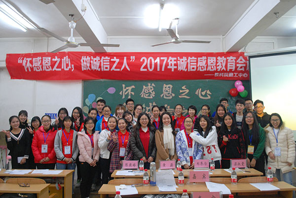 11月24日晚,教科院勤工中心在燕雷楼601室召开了以“怀感恩之心,做诚信之人”为主题的诚信感恩教育会议。莅临本次会议的嘉宾有教科院辅导员黄蔚老师、学贷中心学生干部、各二级学院勤工中心干部以及教科院勤工中心主任郑乔匀,副主任陈奕婷、梁淑雯等。