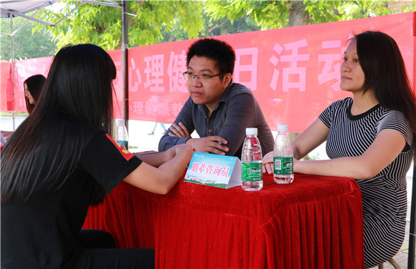 心理现场咨询区由来自心理教育与咨询中心的六位专业老师坐镇,他们分别是李静娴、薛颖、杨莉莉、张俊杰、卢伊颖和申紫薇。咨询区受到了同学们的热烈欢迎,为了能够解答自己的疑惑,同学们都十分耐心地排队等待做咨询。杨莉莉老师说:“这次的活动是向同学们普及心理健康知识的一个宝贵机会,它在起到宣传的作用的同时,也确实解决了不少同学的心理困惑。” 记者采访到来自16中本4班的潘心悦,刚刚结束完咨询的她表示,因为了解到了一些心理学中关于情绪方面的知识,她变得更加能悦纳自我了。