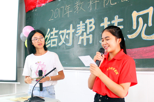 在上届优秀帮扶队员张金珍和黄玉兰的发言中,她们鼓励同学们要不断鞭策自己,珍惜机会,虚心求教,为日后工作打下基础。宣誓环节过后,同学们以信传情,写下对师弟师妹的殷切期望,对师兄师姐的真挚感谢。