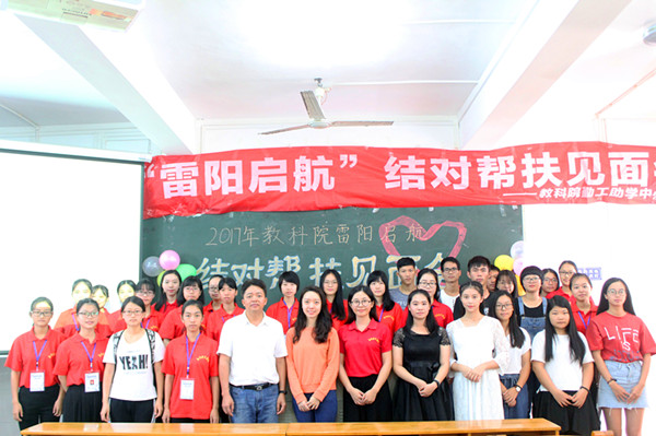 10月28日上午,教科院雷阳启航结对帮扶见面会在燕雷楼604室召开。据了解,雷阳启航结对帮扶活动旨在深入推进自强教育,在资助育人的基础上完善心灵帮扶,引导家庭经济困难学生自强不息、立志成才。本次见面会有教科院党委李德深副书记、黄蔚老师、教科院和各学院勤工中心学生干部等共同参与。