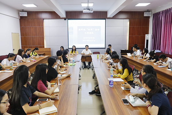 9月28日,由岭南师范学院教育科学学院学生工作办公室主办的“双节”安全班长会议在燕雷楼408会议室召开。出席本次会议的嘉宾有教科院党委副书记李德深、辅导员苏贵、黄蔚、关刘君、谭诗蔚,教科院非毕业班班干参加了会议。