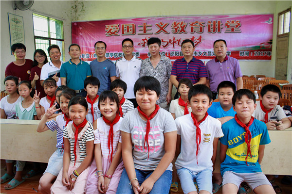 我校教科院党委组织的伴我同行社会实践队以大学生党员为主力,团结优秀的入党积极分子,围绕“喜迎十九大,做合格大学生党员”的主题,秉承“关爱留守儿童,培育合格党员,献礼十九大”的精神,32名队员在湖南省邵阳市小溪市乡文昌小学,开展为期十天的普法宣传、支教助学、学术调研等实践活动,圆满完成广东省委教育工委大学生党员暑期社会实践项目。活动期间,校党委副书记黄达海、校党委组织部部长邓逢光参与指导,校党委组织部副部长莫孙冶、教科院党委书记郭和才、副书记李德深均亲临湖南邵阳慰问指导。