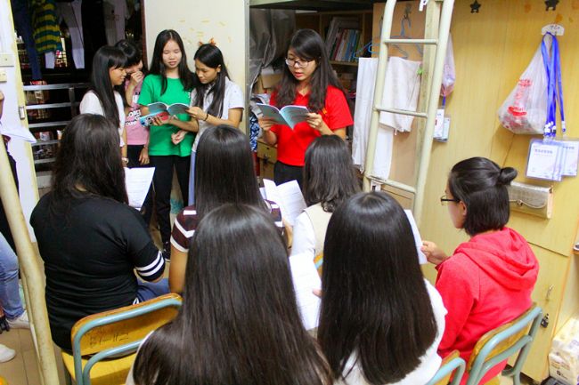 据了解,本次实践活动以小组为单位,通过宣读的方式,走进宿舍,向学生们宣传岭南师范学院的教学工作审核评估知识及校情。在本次实践活动中,入党积极分子按办学定位介绍、教学设施介绍、专业设置与培养方案介绍、课堂教学介绍以及学风与学习效果介绍五个内容分类详细介绍了学校的基本情况,并对同学们了解不深的部分进行重点讲解。宣讲过程中,各宿舍同学认真听讲,积极配合活动的开展,并对辛苦宣讲、耐心解答的入党积极分子表示感谢。