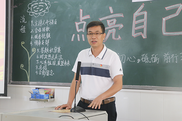 班主任雷学军老师做总结发言。他强调学生应该紧跟党的步伐,把习近平总书记重要讲话精神落实到日常生活中去。雷学军认为,要为国家贡献个人力量,应该先从小事做起,从身边事做起。他提醒同学们要脚踏实地,把自己的生活、学习、健康和睡眠照顾好,成为一名有家国情怀、远大追求的优秀大学生。