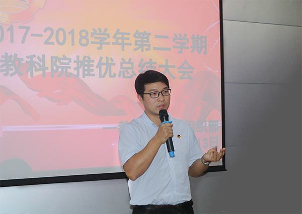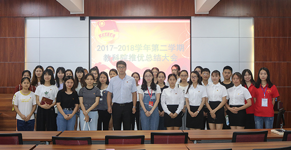 5月13日晚,教科院团委组织部于教四C栋408室举办2017-2018学年第二学期推优总结大会。教科院团委负责人关刘君老师、校组织部干部、音舞院组织部干部、教科院党建干部以及四名优秀支部代表出席了本次会议。