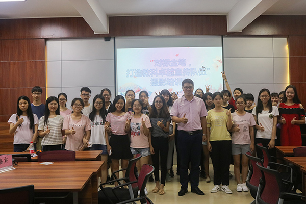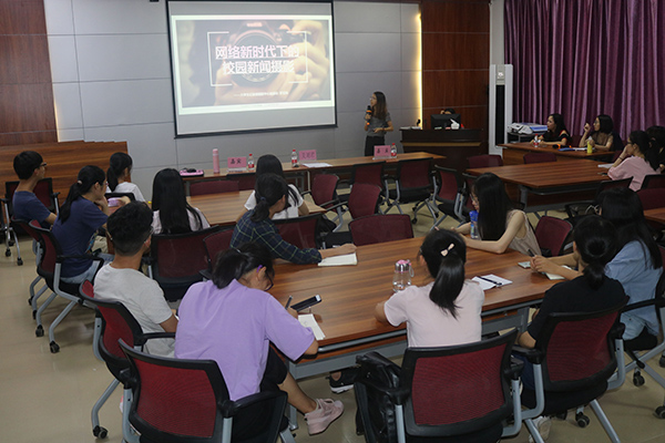 6月1日晚,教科院宣传中心邀请金笔岭师摄影奖获奖者、教科院15小教1班的罗宝苑担任此次培训会的主讲人。教科院辅导员关刘君、宣中全体干部及各班宣传委员出席了本次培训会。