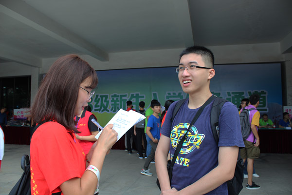 采访大一新生(李羽翔摄)