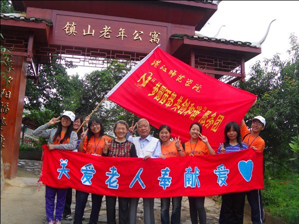 关雪飞(前排左一)到贵阳镇山敬老院慰问老人