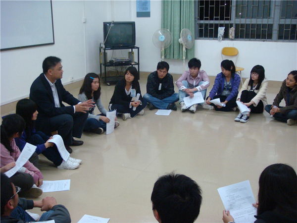 在活动中,湛一中心理老师陈恒给予了辅导小组指导和鼓励。他谈到团体辅导在日益发展的社会里已成为一个具有巨大发展前景和需求的培训课程,如流行于中小学的团队辅导和亲子辅导等。由此可见,对一名师范生而言,懂得运用团体辅导的技能于自己将来的教学工作中,将成为一种优势。