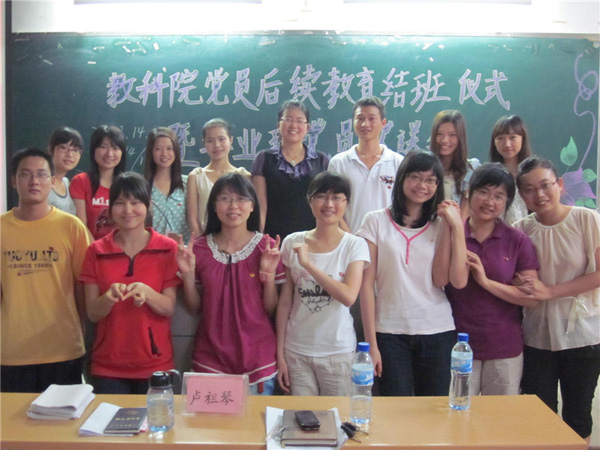 为进一步展现党员风采,加强毕业生党员和非毕业生党员的交流,形成和谐的支部氛围,增强支部凝聚力。5月27日晚,我院党委在燕雷楼举行我院党员后续教育结班仪式暨毕业班党员欢送会。辅导员卢祖琴老师出席会议。