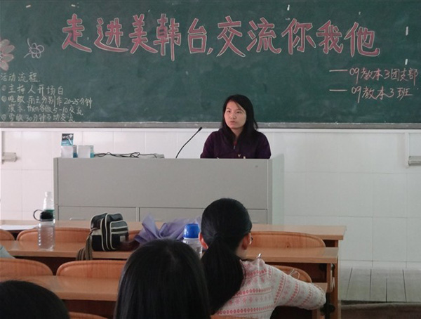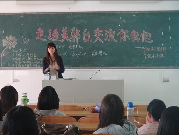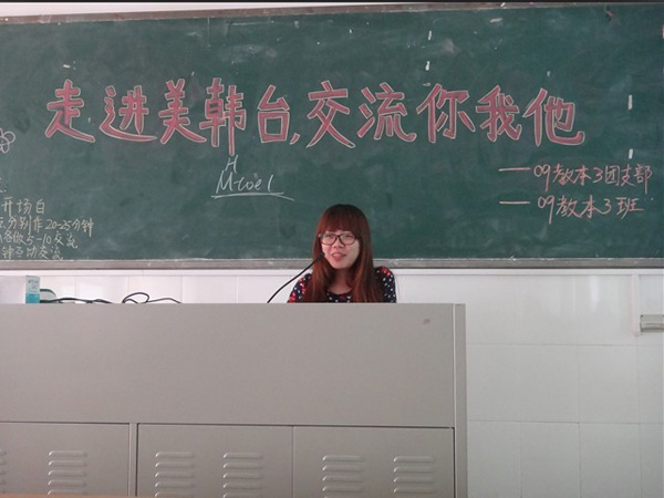 为了促进多元文化交流,扩大团员们的知识面,丰富团员们的知识储备,促进团员们学习交流,11月24日下午,我院09教本3团支部在燕雷楼503教室开展了以“走进美韩台,交流你我他”为主题的团活动,该支部全体成员积极参与其中。
