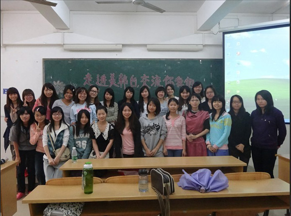 整个座谈会主要分两个流程,首先是三位团员分别作的赴美韩台情况的PPT展示,从学习、生活、旅行等三个方面详细地展示并叙述她们的所见、所闻和所感。徐雪欣向团员们展示了不一样的台湾教学模式和前卫的教学组织;潘丽云带我们领略了韩国与众不同的传统文化;黎晓敏则用地道的英语讲解了中美饮食差异。她们精彩的讲解引起现场团员们的阵阵呼声和感叹声。接着是近距离互动第二环节,与会团员们针对该三位团员们所介绍的情况进行提问。这些一问一答,不仅加深了团员们对外来文化的认识,更增进了班集体的学风建设,营造了良好的学习气氛。