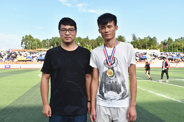 “如果还有机会,我还会继续参加下一年的校运会!”胡光鑫激动地说道。对自身能力的肯定,以及教练员的高度评价,使胡光鑫坚定了下一年继续在赛场上发光发热的心。三级跳远教练邝文达对他的表现很是满意,觉得他今天超常发挥,在比赛中也能不断地进步,比平时的成绩要好上许多。而跳高教练徐济钰觉得胡光鑫勇于挑战自己,并对他给予很高的期望,期待赛场上的胡光鑫能够保持最佳状态投入比赛,争取取得优异成绩。除此之外,他还勇于参与校田径队的选拔,备战今年即将迎来的大学生锦标赛,决心为岭师的体育事业贡献自己的力量。对田径的热爱以及周围人对他的高度评价,使胡光鑫在获得荣誉的同时,也收获了更高的自我价值。