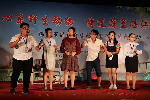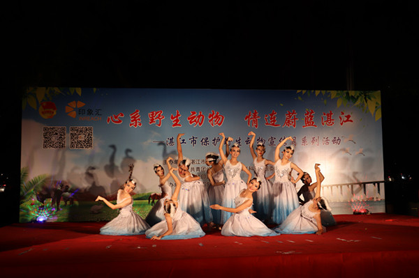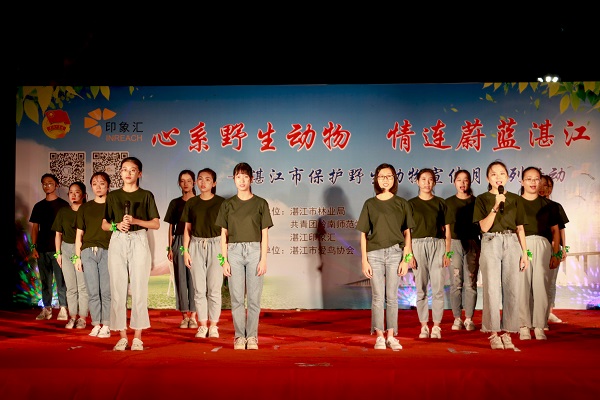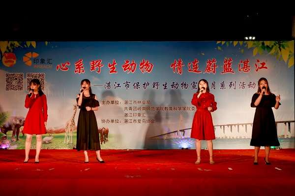 本次活动分为启动仪式和保护野生动物欢乐游园会两部分。启动仪式上,健美操队以闪亮的服装与轻松活泼的表演点燃了现场的气氛,市民纷纷驻足观看;教科院文工团礼仪队身穿简洁长裙与庄重的黑西装为观众带来保护野生动物宣传画走秀展《魁秀》,引来观众阵阵掌声;岭南师范学院附属幼儿园小朋友带来舞蹈《同在蓝天下的人鸟家园》,天真烂漫的表演引起了观众对人鸟和谐相处的思考;由教科院话剧队带来的《一出好戏》借一出家庭闹剧,以诙谐的表演讥讽偷猎者为谋取自身利益而违反法律的无良行为;教科院17级学前1、2班团支部带来的舞蹈《天鹅》配合着悦耳的音乐,灵动的舞姿活灵活现,淋漓尽致地展现出天鹅优雅的姿态;教科院声乐队演唱的歌曲《岁月神偷》与朗诵队的朗诵《以爱之名,为爱发声》都表达了人与自然和谐相处的呼唤。随后,志愿者代表吴艺仪上台宣读保护野生动物倡议书,呼吁广大市民保护野生动物,共同维护自然生态平衡。